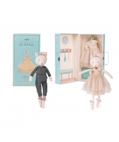 Célestine la poupée chat nous invite dans sa penderie. Une valise armoire avec miroir intégré qui comprend tenue d'échauffement et robe de gala sur cintre. Petits pas, pas de deux, pas de chats… il faut s'entraîner avant le spectacle de fin d'année !
