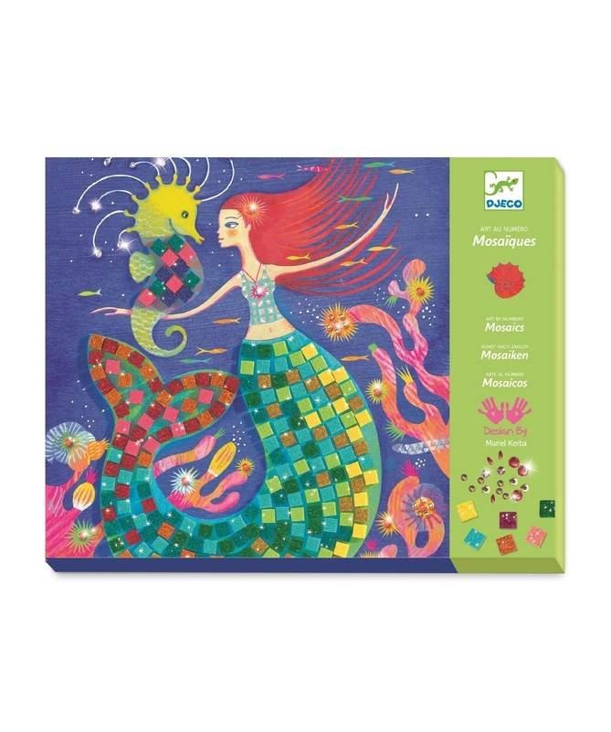 Dès 7 ans, votre bambin suivra le code couleur des décors marins pour y coller de petits carrés de mousse pailletée et de jolis strass autocollants. Pour de jolies sirènes étincelantes !