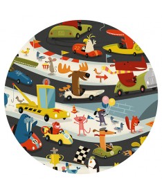 Une fois les 54 pièces aux bons endroits, il faut retrouver toutes les images de la frise dans l’image centrale. Un jouet 2-en-1 pour les enfants de 4 ans et plus. Te souviens-tu de l’endroit où se trouve le lapin carotte ? Et la souris montgolfière ? Un rallye automobile riche et foisonnant ! Une activité à faire seul ou entre copains ! Poster inclus.