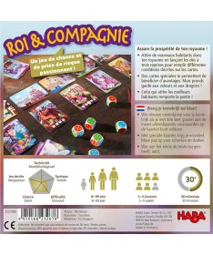 Roi & Compagnie est un excellent jeu de dés pour s’amuser entre amis et aussi en famille. Son petit côté stratégique et ses cartes spéciales lui donnent une saveur assez particulière qui mêle suspense et coups-bas… Son mini-format est idéal pour être emporté partout !