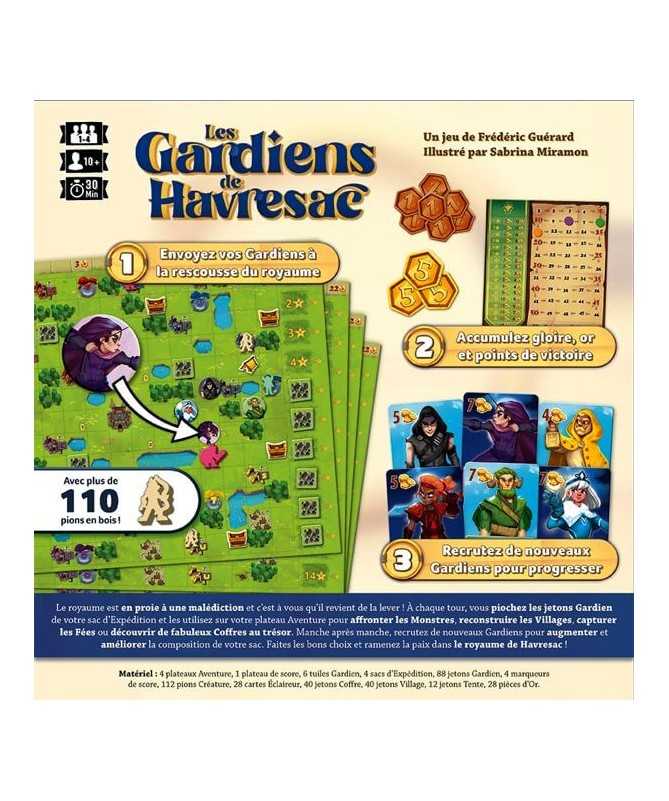 Le royaume de Havresac est en proie à une terrible malédiction et c'est à vous, et à votre équipe de Gardiens, qu'il revient de le libérer. Accumulez gloire, or et points de victoire et soyez le plus valeureux défenseur du royaume.