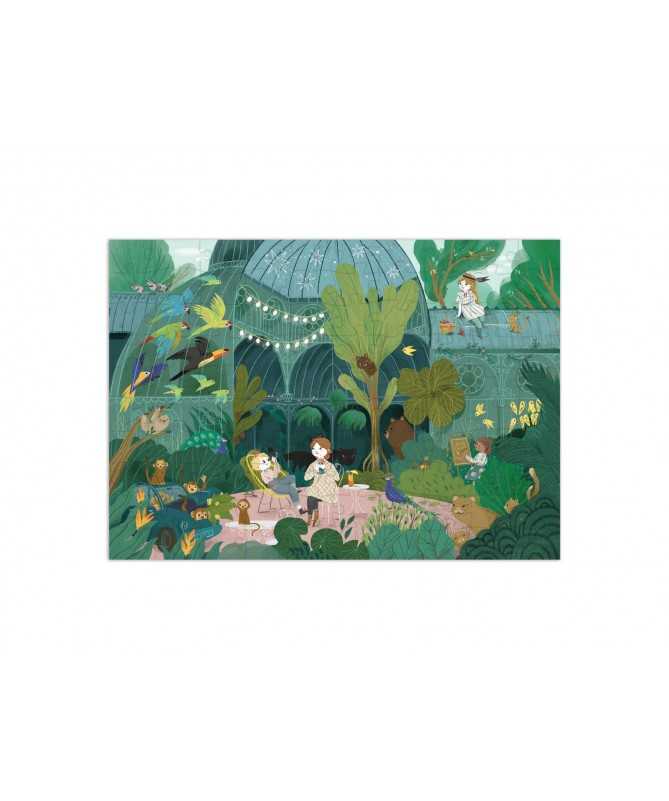 Puzzle d'observation 100 pcs. Une fois assemblé, à l'aide de la loupe, amuse-toi à retrouver les animaux et objets cachés dans l'illustration de Lucille Michieli.