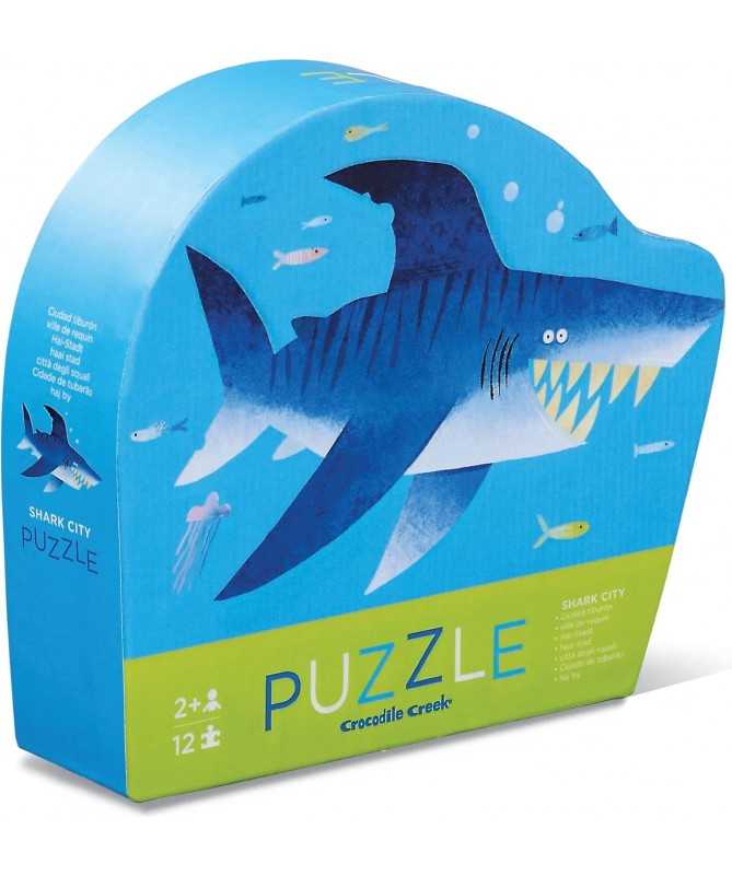 Un puzzle de 12 grosses pièces, pour les enfants de 2 ans et plus. Imprimé avec de l'encre à base de soja sur du carton recyclé. Une activité calme idéale pour développer la motricité et la concentration des enfants. Assemblez le requin tigre au sourire ravageur pour nager en plein bonheur !
